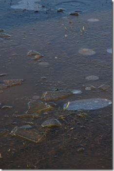 It is a beautiful sunny day, but freezing! Here’s the frozen puddle, and it was so funny watching Merlin trying to find a piece where the ice was broken to drink the water!